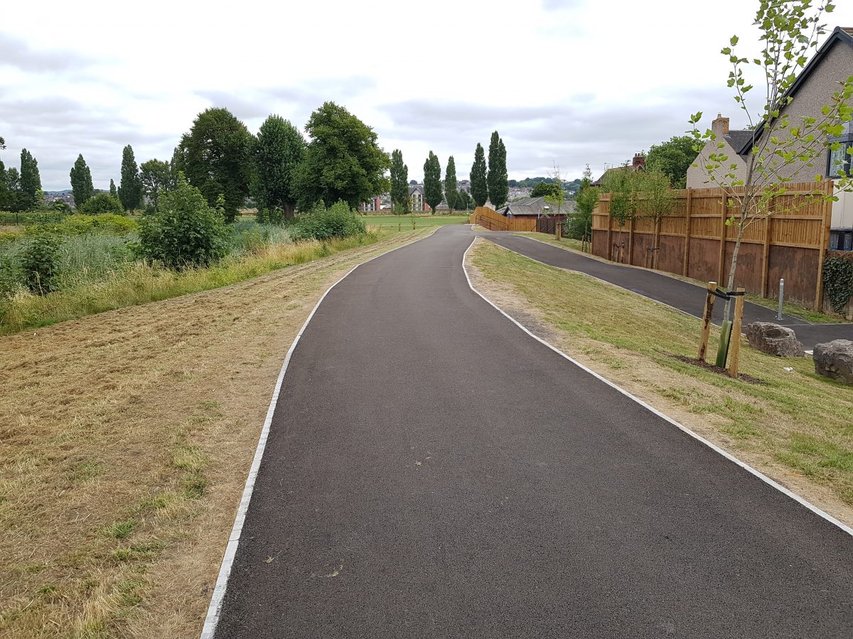 (Above) The improved path on the crest of the flood defence through Shaftsbury park.