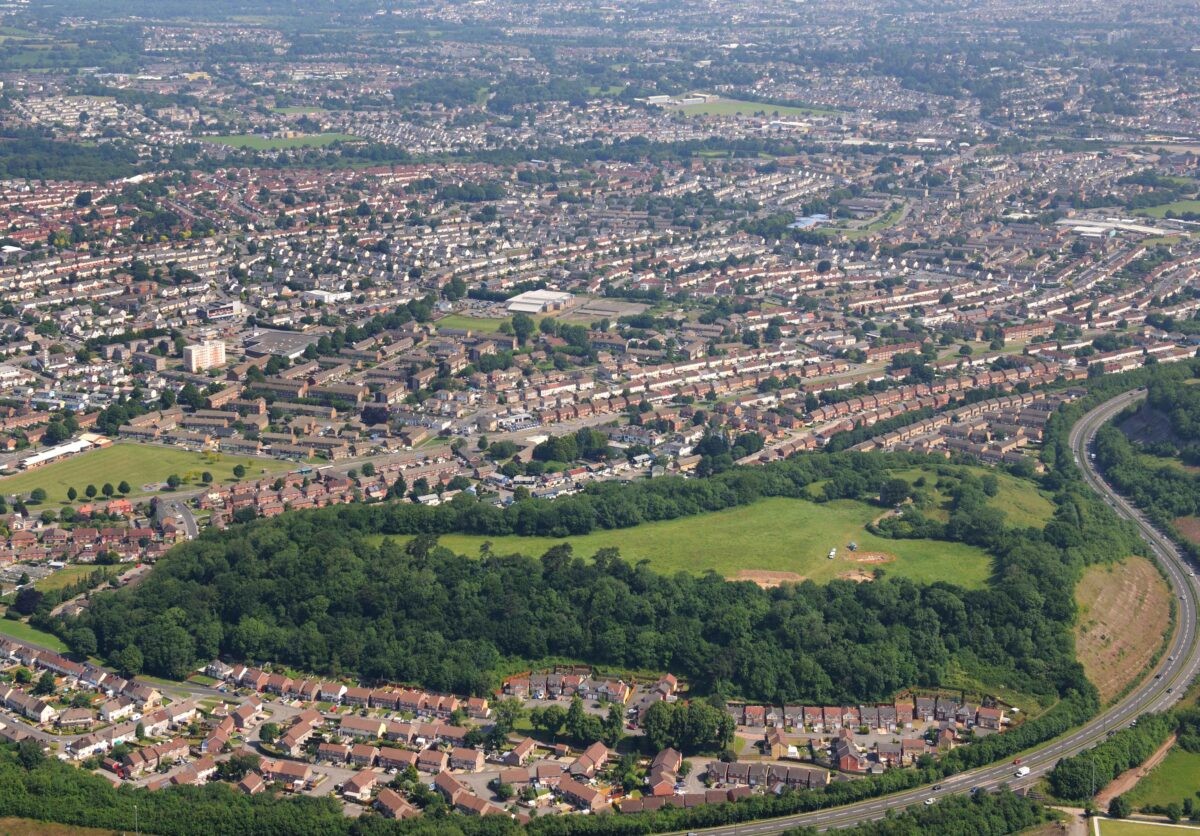 1: A view from the top of the hill looking down on the estates below.